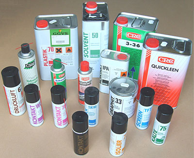 Als CRC-Kontaktchemie Stützpunkt-großhändler bieten wir Ihnen das gesamte Programm für Wartung, Reinigung und Schmierung an. Bei Bedarf sind auch alle weiteren Produkte des gesamten CRC-Kontaktchemie – Sortiments lieferbar, oft auch als Spray. Daneben können wir natürlich auch Ihren Bedarf chemisch-technischer Produkte aller anderen Hersteller, wie z.B. Henkel, Teroson, OKS, Molykote, Diamant, Dow, WD-40 etc. bedienen.